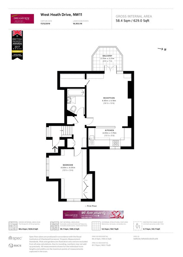 DREAMVIEW ESTATE are pleased to offer well located 1 bedroom flat, approx. 538 sq ft. Top floor of a substantial converted house, minutes from Golders Green tube, close to shops, walking distance to Hampstead Heath extension, Golders Hill Park.